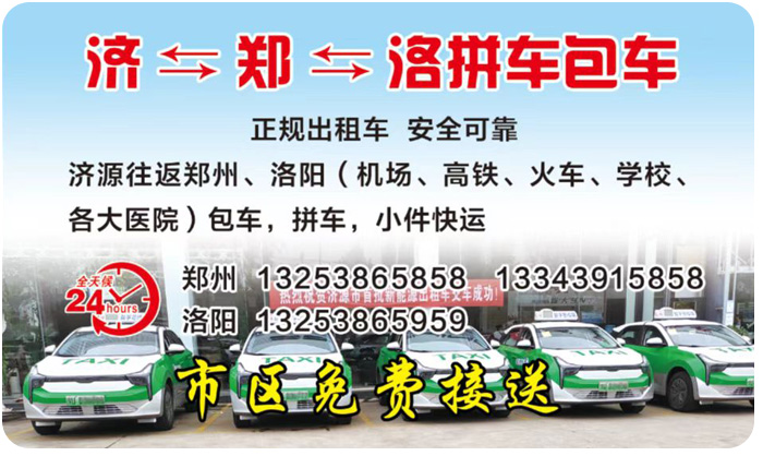 我們的車現(xiàn)有別克商務(wù)車,奧迪A6L,現(xiàn)代、大眾等一系列車型。用戶 的信賴是我們不斷前行的動力,“優(yōu)質(zhì)車輛,精心服務(wù)”,是我們對客戶的承諾。 濟(jì)源到鄭州,濟(jì)源至洛陽別克商務(wù)拼車,濟(jì)源至鄭州調(diào)度電話:13253865858,13343915858。濟(jì)源至洛陽調(diào)度電話:13253865959 往返拼車、代發(fā)小件、機場包車 、旅游用車,市區(qū)免費接送,環(huán)球出租車是陪伴您出行的好朋友。